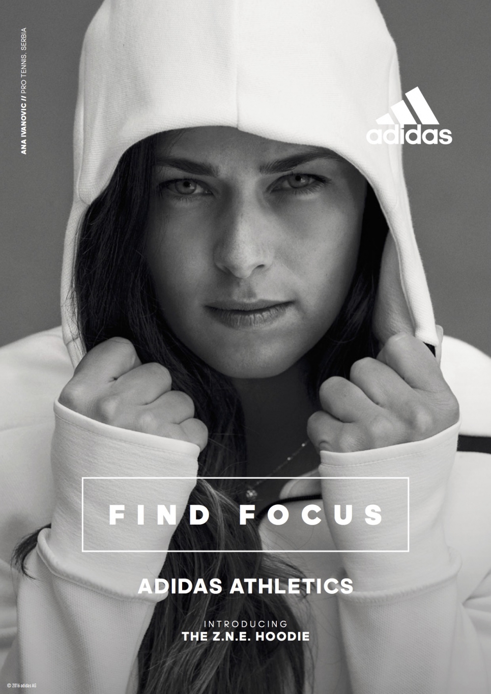 As part of an ongoing collaboration and partnership with adidas, Ana was chosen to feature in their new Z.N.E Hoodie global campaign "Find Focus".